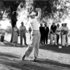 Gene Littler poses with golf bag at Pebble Beach Golf Links.