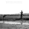 J. Bramstone preparing to tee of at the 15th, Westward Ho! 2 children caddies and a few other golfers look on.